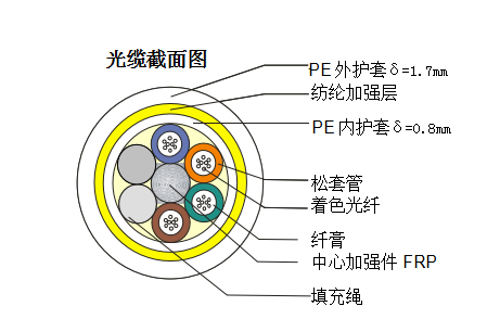 例:ADSS-48B1-AT-200 示意:ADSS-48B1(8B1代表芯數(shù))-AT(護(hù)套)-200(檔距)