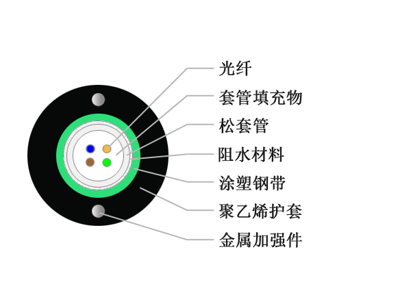 .兩根平行鋼絲保證光纜的抗拉強度;