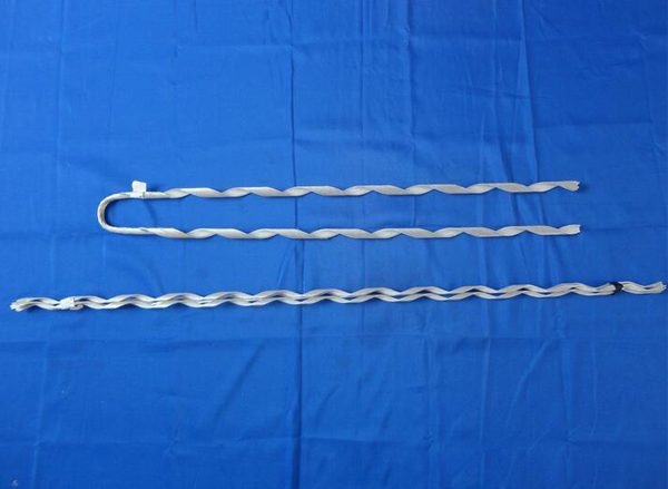 護線條預(yù)絞絲:鍍鋅鋼絲或鋁包鋼絲,預(yù)絞絲內(nèi)壁粘有微粒金剛砂,增加摩擦力,減少光纜的側(cè)壓力。預(yù)絞絲在加工時被預(yù)制成幾個子束,避免安裝誤差并便于快速安裝。預(yù)絞絲的末端根據(jù)不同規(guī)格朝徑向外側(cè)彎曲,避免光纜在微風(fēng)振動下與線夾末端的摩擦,以免擠壓損害光纜
